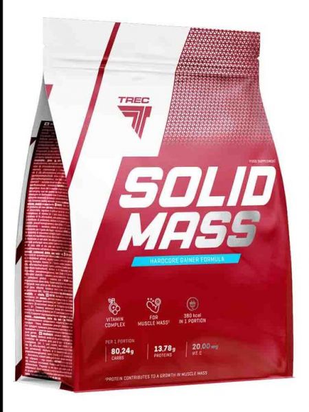 Если вы выбрали для себя тяжелые и высокоинтенсивные виды спорта, такие как бодибилдинг или пауэрлифтинг, и крайне нуждаетесь в дополнительном приросте качественной и мощной мускулатуры, воспользуйтесь на сто процентов проверенным средством SOLID MASS и успех в этом сложном деле будет гарантирован. Качество использованного компанией Trec сырья и ее репутация на рынке не оставляет нареканий со стороны специалистов в области спортивной диетологии и спортсменов самого высокого класса.