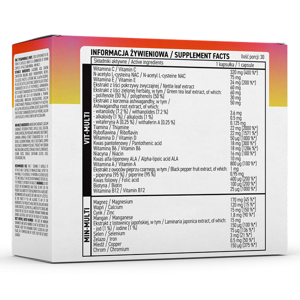 Принимать по 1 порции (2 капсулы VIT-MULTI и MIN-MULTI) в день после основного приема пищи.Перед употреблением рекомендуется проконсультироваться с врачом.